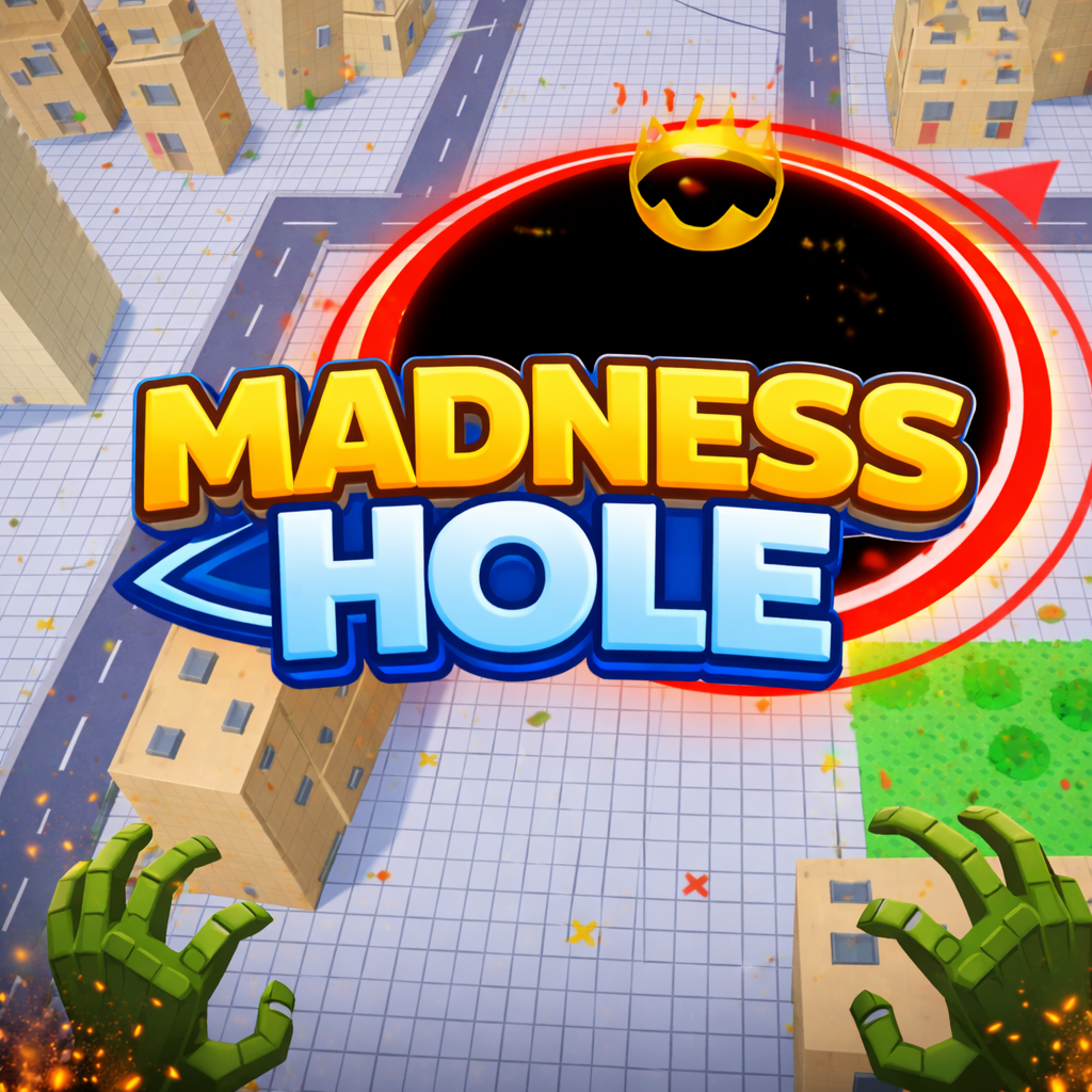 Madness Hole is an arcade-style io game where you control a growing black hole. You begin as a small entity and must expand by consuming objects around the map. The environment is filled with items like cars, props, and structures that can be absorbed. As you grow larger, you unlock the ability to swallow bigger targets. The ultimate goal is to dominate the entire map.